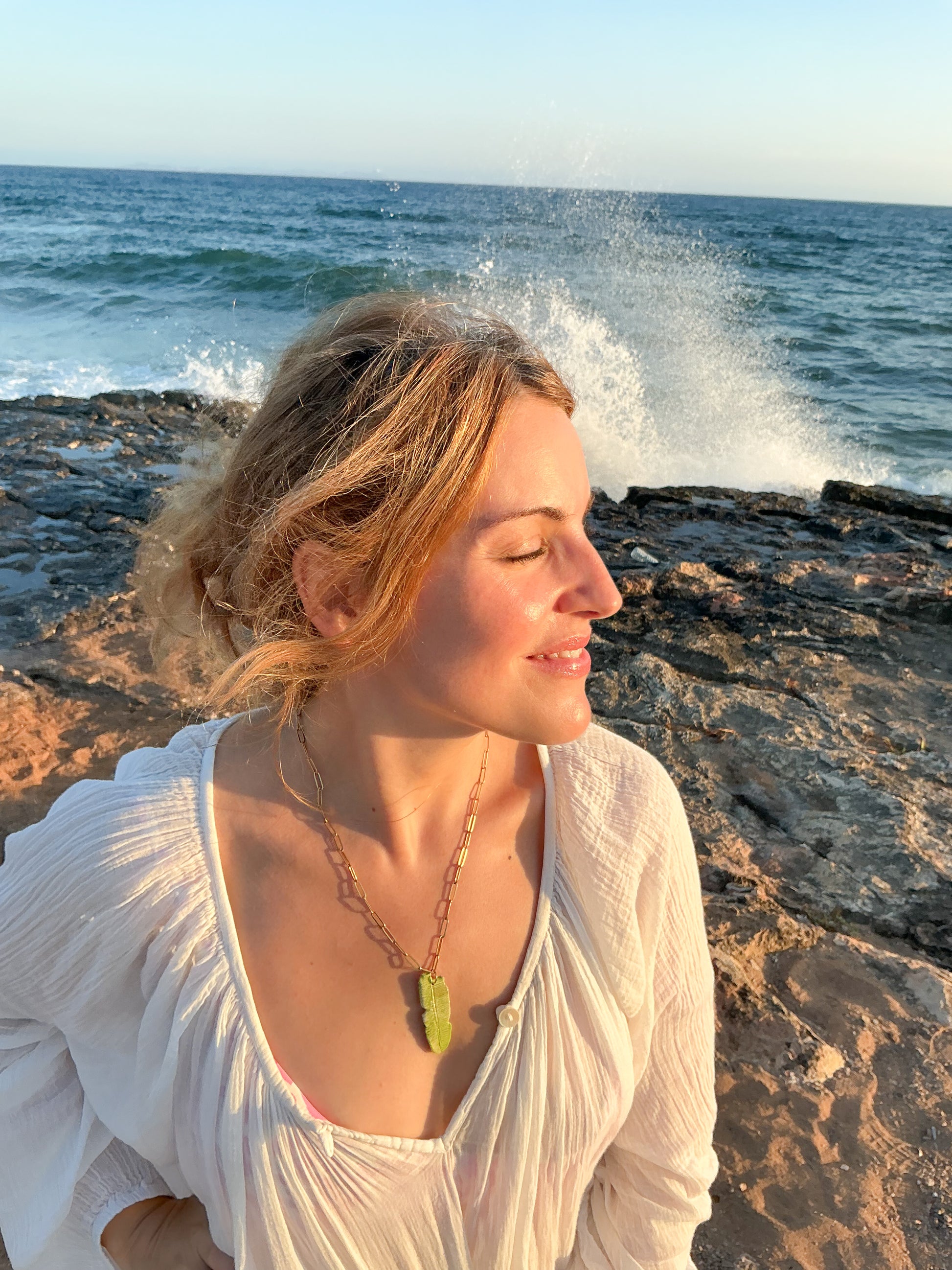 🍃Collar con hoja de cerámica moldeada y esmaltada con materiales libres de plomo, níquel y cadmio. Está acompañado por una cadena de acero inoxidable hipoalergénico (316L), resistente y amable con tu piel.